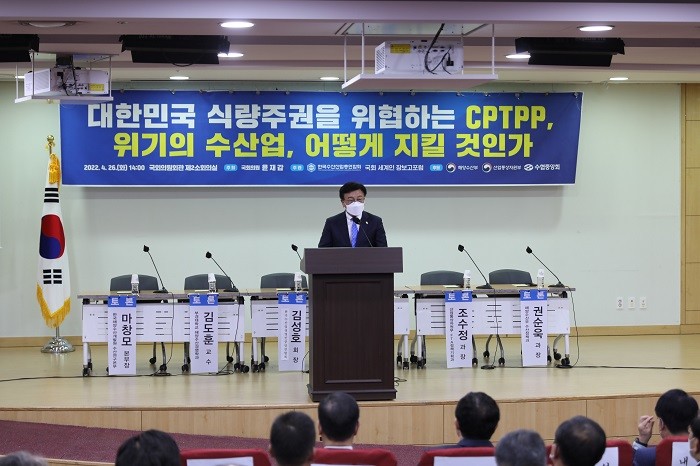 국회 농림축산식품해양수산위원회 소속 윤재갑 국회의원(더불어민주당 해남·완도·진도)이 26일(화), 국회의원회관 제2소회의실에서 "대한민국 식량주권을 위협하는 CPTPP, 위기의 수산업 어떻게 지킬 것인가" 토론회를 개최했다.