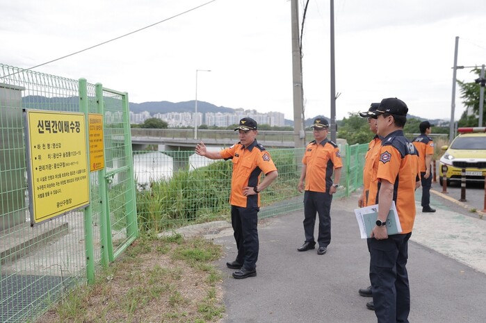 | ▲ 광주광역시소방안전본부, 20일 여름철 집중호우로 인한 인명피해 예방 위해 광산구 침수우려지역 현장점검 / 광주광역시 제공 |