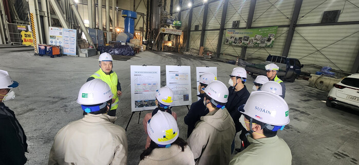 서울 구로구가 지난 26일 구청 토목직 공무원 대상으로 ‘광명~서울 고속도로 민간투자사업 터널 공사’ 구간인 온수터널 수직구 공사 현장을 견학했다. 사진은 견학에 참석한 공무원들이 현장 관계자의 설명을 듣는 모습. (사진=구로구청 제공)