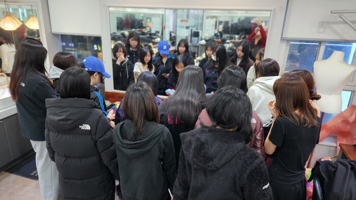 | ▲ 예비 고1 학생들이 입시반 아트마스크 시연을 참관하고 직접 실습에 참여하고 있다. |