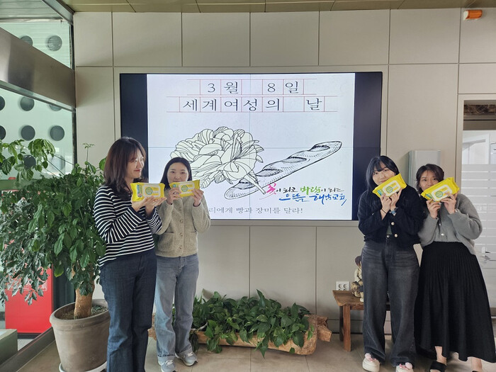 해남교육지원청은 7일 여성직원을 대상으로 기존의 조직문화 틀을 깨고 ‘깨끗하게 맑게 자신있게’의미로 클렌징 티슈를 전달했으며, 성인지 감수성을 제고하며 여성의 날 의미를 되새겼다.