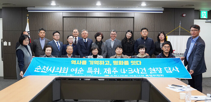 [순천=이문석 기자] 전남 순천시의회 여수·순천 10.19사건 특별위원회(이하 여순특위)는 최근 제주 4·3 평화공원과 위령탑을 찾아 참배한 후, 제주 4.3 희생자 유족회와 간담회를 개최해 두 지역의 과거사 현안 해결을 위한 협력과 연대 방안을 심도 있게 논의했다.