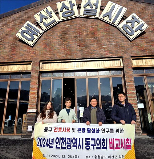 [인천=김형만 기자] 인천 동구의회는 12월 26일 충청남도 예산시장과 예당호를 방문해 전통시장 활성화 및 지역 관광산업 발전을 위한 방안을 모색했다고 밝혔다.