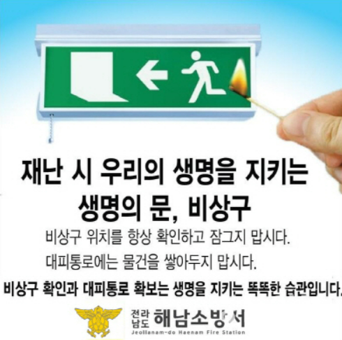 | ▲ 비상구 대피통로 확보 홍보 이미지 / 해남소방서 제공 |