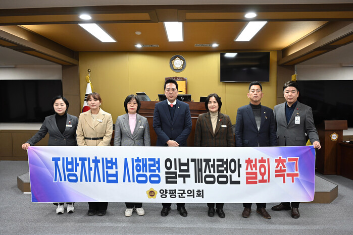 이에 양평군의회는 지방자치법 시행령 일부개정령안 중 제44조제1항제5호의 개정 철회를 강력히 촉구한다.
