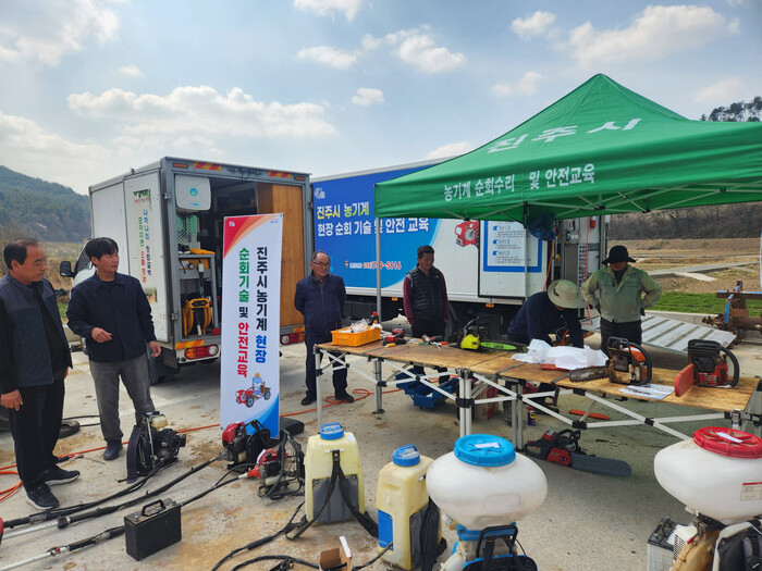 이날 행사는 △경상남도 농업기술원과 진주시가 합동으로 경운기, 관리기, 예취기 등 소형농기계 정비기술교육 △한국교통안전공단의 안전용품 배부 △진주경찰서의 농기계, 오토바이, 자전거 등에 야간 반사지 부착 △새마을교통봉사대의 교통안전교육을 실시하였으며, 이 분야의 전문가와 봉사자 15명이 함께 참여하여 진행되었다.