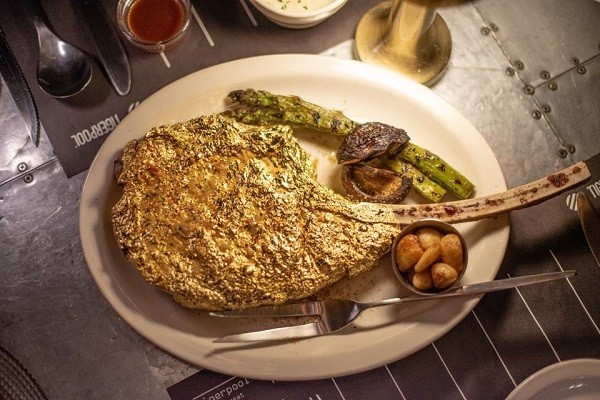 타이거풀이 선보인 신메뉴 ‘24K 황금 스테이크’는 토마호크와 티본, 부위별 두가지 종류로 즐길 수가 있다. 고기의 앞과 뒷면을 24K 식용금으로 감싼 메뉴이며, 일반 스테이크에 비해 한층 더 고급스러운 풍미를 자랑한다.