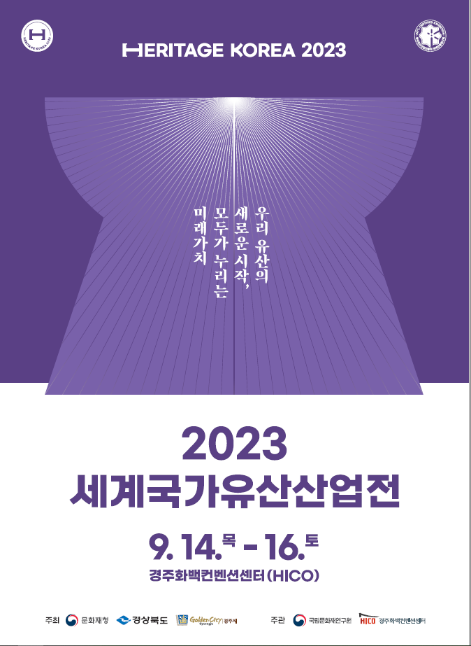 국가유산 분야 전시회 '2023 세계국가유산산업전'이 오는 9월 14일(목)부터 16일(토)까지 경주화백컨벤션센터(HICO, 이하 하이코) 전관 및 경주일원에서 개최된다.