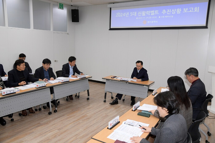 광주광역시(시장 강기정)는 29일 시청 세미나실에서 민선 8기 역점사업인 ‘5대 신활력벨트’의 2024년 추진 성과를 공유하는 추진상황 보고회를 개최했다.