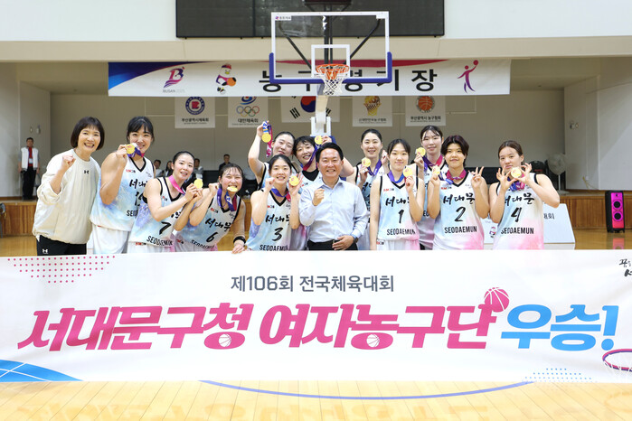 [시민일보 = 이대우 기자] 서울 서대문구청(구청장 이성헌) 여자농구단이 23일 부산대학교 경암체육관에서 열린 ‘제106회 전국체육대회’ 농구 여자일반부 결승 경기에서 경상남도 대표인 사천시청에 54대 49로 승리하며 이 대회 2년 연속 금메달을 차지했다고 밝혔다.