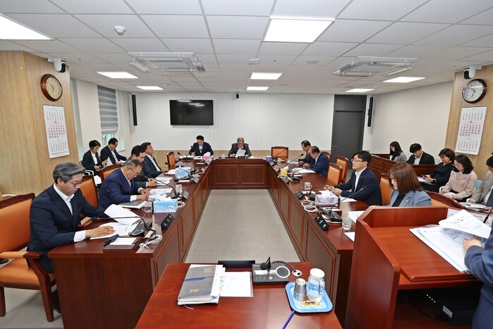 [해남=정찬남 기자] 전남 해남군의회(의장 김석순)는 22일 군의회 운영위원회실에서 2023년 제9차 의원간담회를 갖고 해남군으로부터 제출된 2024년도 공모 예정사업인 지방소멸대응기금 투자계획 등 인구감소대응 추진 현황과 도시 취약지역 생활여건 개조사업, 전남형 균형발전 300 프로젝트 응모 사업계획, 밭작물 공동경영체 육성 지원사업에 대한 의견을 청취했다.