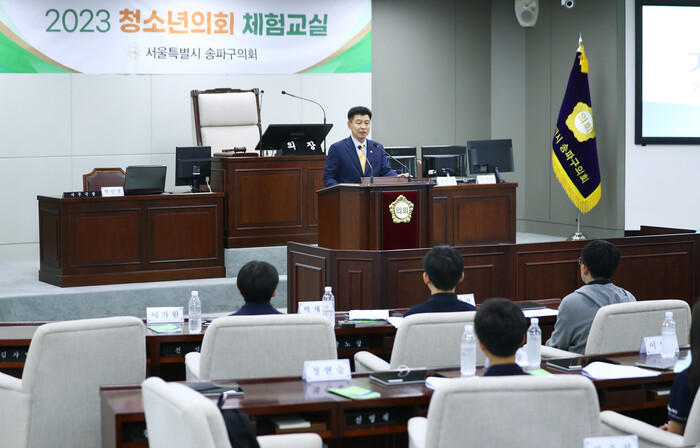 박 의장은 환영사에서 "구의회가 무엇을 하는 곳인지, 구의원이 무슨 일을 하는지 오늘 많이 배워가시기를 바란다"며 "대한민국에 국회, 행정부, 사법부가 있듯이, ‘송파구’라는 지방정부에도 송파구의회, 송파구청이 있다. 권력은 서로 견제하면서 균형을 이룰 때 가장 빛나는 것이다.”라며, “오늘 의회체험을 통해 지방의회에 대해서 더 관심을 가지게 되고 더 나아가 우리나라 지방자치에 대해 진지하게 생각해보는 기회가 되길 바란다”라고 격려했다.