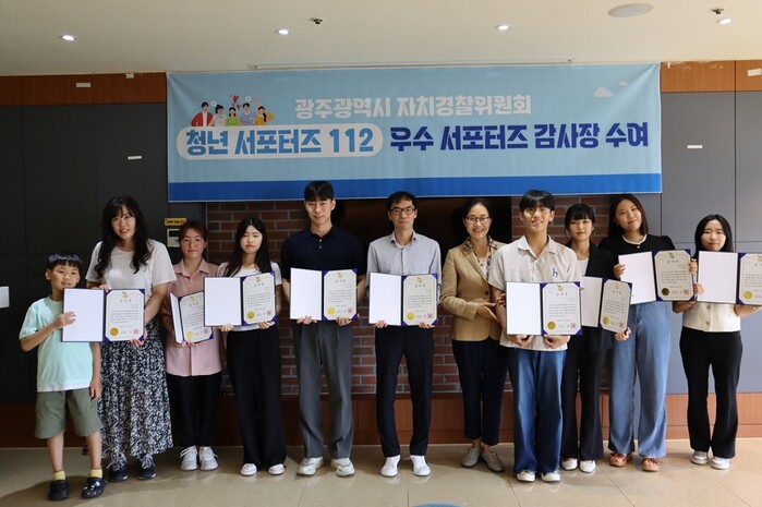 청년 서포터즈112는 자치경찰분야 온라인 홍보와 지역 맞춤형 치안 시책 발굴을 위해 블로그, 페이스북, 인스타그램, 카카오톡 등 개인 사회관계망서비스(SNS)를 보유하고 있는 19세 이상 39세 이하 광주시민을 대상으로 해마다 모집·운영하고 있다.
