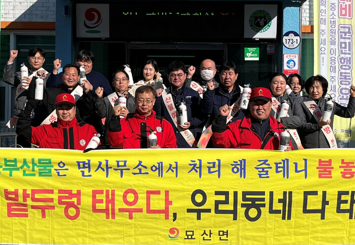 특히 묘산면은 3월 6일 산불 발생 시 초동진화 능력을 강화하기 위해 산불감시원들에게 휴대용 소화기를 지급했다. 이는 합천군 내 읍·면 지역 중 처음으로 시행된 조치로, 실효성이 입증되면서 현재는 다른 읍·면에서도 확대 적용되고 있다.