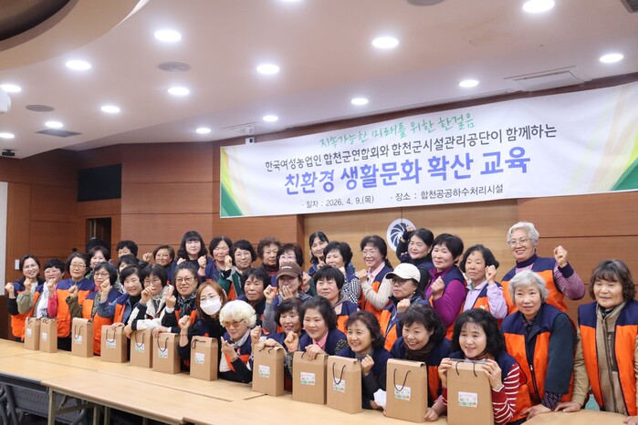 [합천=이영수 기자] 합천군시설관리공단은 지난 9일 한국여성농업인 합천군연합회를 대상으로 친환경 생활문화 확산 교육 프로그램을 운영했다고 밝혔다.