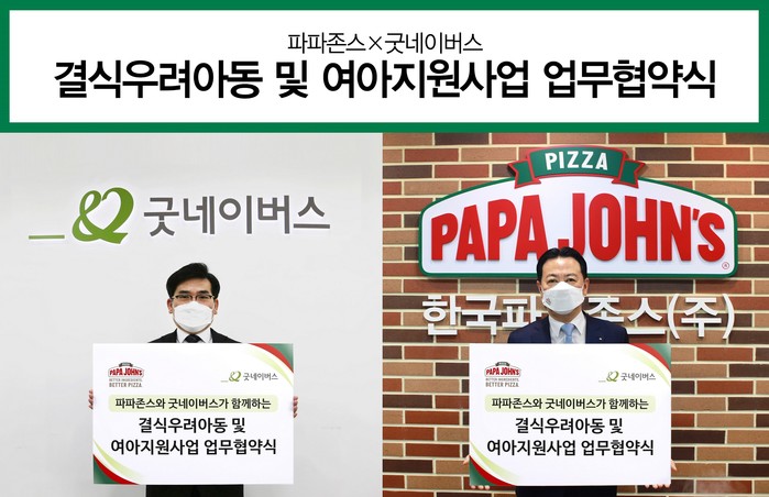 파파존스 피자는 금일(7일) 비대면 방식으로 글로벌 아동권리 전문 NGO인 굿네이버스와 국내 취약계층 아동 복지 증진을 위한 업무협약을 체결했다고 밝혔다.
