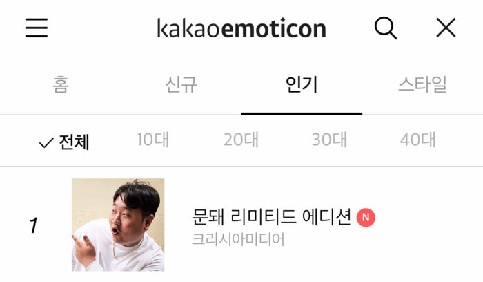 MCN회사 크리시아미디어와 유튜버 별놈들의 나선욱과 함께 협업하여 출시한 문돼 리미티드 에디션이 카카오톡 이모티콘 샵에서 전체 이모티콘 인기 1위에 등극했다.