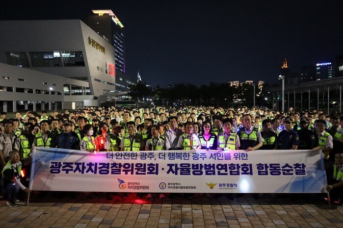 이번 합동 순찰에는 광주자치경찰위원회와 광주경찰청, 광주자율방범연합회 소속 자율방범대원 등 총 500여 명이 참여했다.