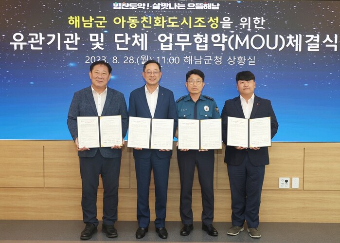 [해남=정찬남 기자] 전남 해남군은 아동친화도시 조성을 위해 유관기관 및 단체와 업무협약을 체결하고 힘을 모아나가기로 했다.