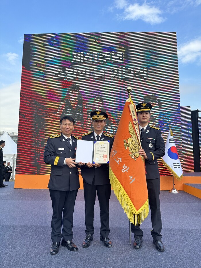 이날 행사에서는 윤석열 대통령이 최기정 강진소방서장에게 대통령 단체표창과 수치를 수여했다.