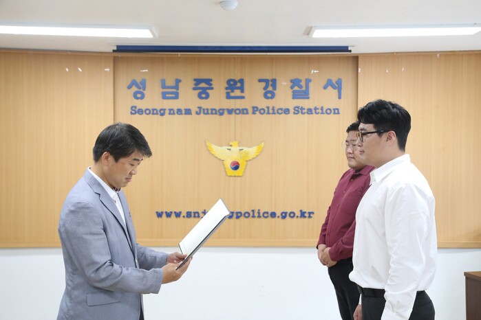 성남중원경찰서는 HR그룹(주)에게 (사)위드인사람과함께를 통해 지역 사회 발전에 헌신하고 노력한 공로로 감사장 전달식을 마쳤다고 밝혔다.