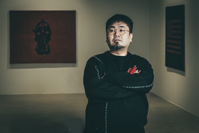 이에 대해 “이번 전시를 기획 중 우연히 김환기 화백이 사용했던 고동나무와 황마 천을 공수하게 되었다. 처음 접해보는 까다로운 소재에 작품의 결과를 예측하기 어려웠다. 하지만 소재에서 느껴지는 독특한 효과가 전쟁이라는 주제를 극대화 시켜 줄 것이라 확신했다.”고 설명했다.