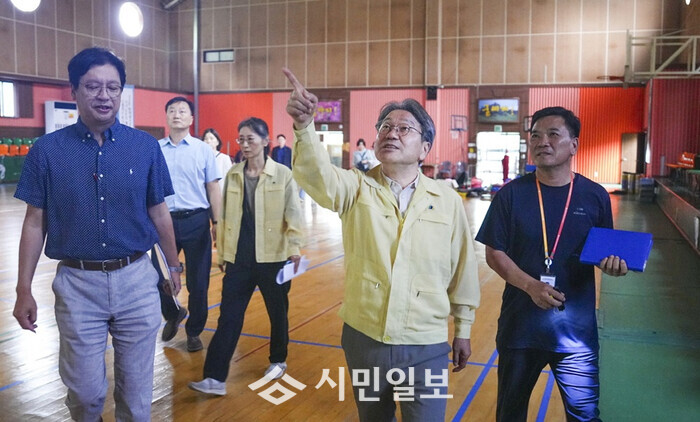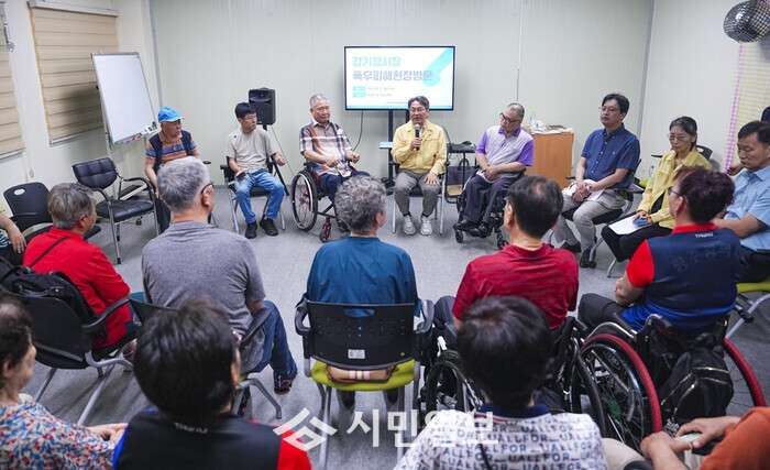 강기정 시장은 복지관동, 체육관동, 보호작업장을 차례로 둘러보며 피해 상황을 면밀히 확인했다. 이후 체육관 이용이 중단돼 불편을 겪고 있는 이용자들과 만나 애로사항과 건의사항을 경청했다.