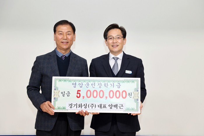지난 2월 1일 영암군 정례조회에서 김영근 영암군 노인회장이 200만 원, 경기화성(주) 양백근 대표가 500만 원, 영암군테니스협회가 300만 원을 기탁한 데 이어, 13일 영암축산업협동조합 1,000만 원, 21일 영진건설 김규룡 대표가 고향사랑기부금 500만 원과 함께 장학회에도 500만 원을 재단법인 영암군민장학회에 기탁했다.