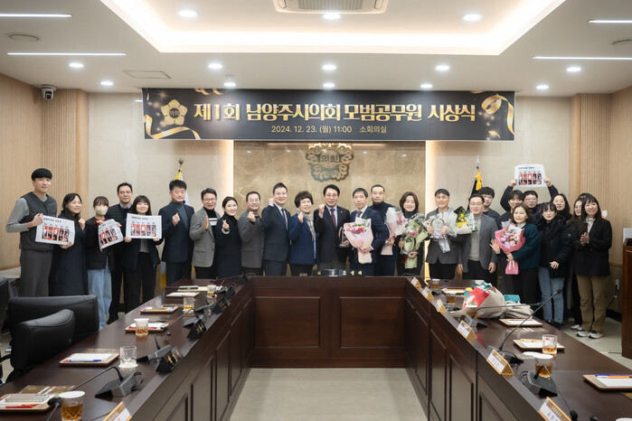 남양주시의회가 개원한 이래 최초로 개최한‘제1회 남양주시의회 모범공무원 시상식’은 올 한해 현장에서 묵묵히 소임을 다하며, 시민을 위해 적극적으로 일한 모범공무원을 격려하기 위해 마련됐으며, 조성대 의장을 비롯해 이정애, 이진환, 한근수, 이경숙, 박경원 의원 등 시의원들과 모범공무원 수상자, 축하객 등 50여명이 참석한 가운데 진행됐다.