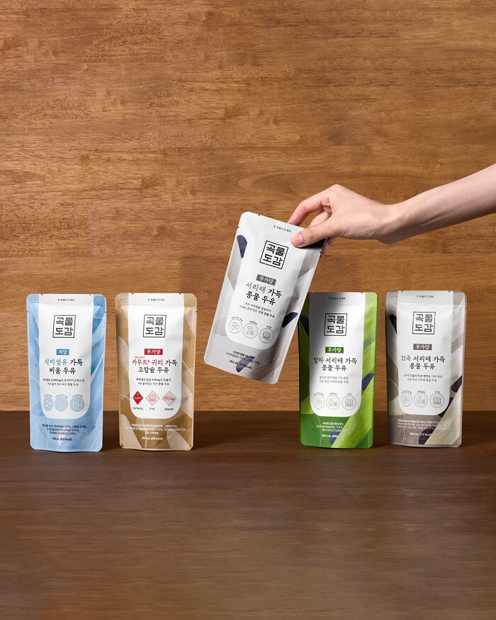 현재 곡물도감은 ▲서리태 가득 콩물두유 ▲21곡 서리태 가득 콩물두유 ▲말차 서리태 가득 콩물두유 ▲카무트 귀리 가득 고칼슘 두유 ▲식이섬유 가득 비움두유 5종의 두유 라인업을 보유하고 있다.