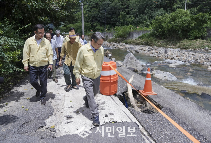 강기정 광주광역시장은 21일 하천제방이 유실된 북구 평촌마을을 찾아 피해상황을 점검하고 긴급복구를 지시했다. 강 시장은 집중호우가 발생한 지난 17일부터 북구 신안교, 용강동 하신마을, 남구 빛고을공예창작촌, 산동교 등을 피해를 입은 현장을 잇따라 찾으며 긴급복구에 총력을 기울이고 있다.