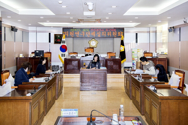 | ▲ 29일 의원연구단체 연구활동 결과를 심의하기 위해 의원연구단체 심의위원회가 개최되고 있다. (사진제공=인천중구의회) |