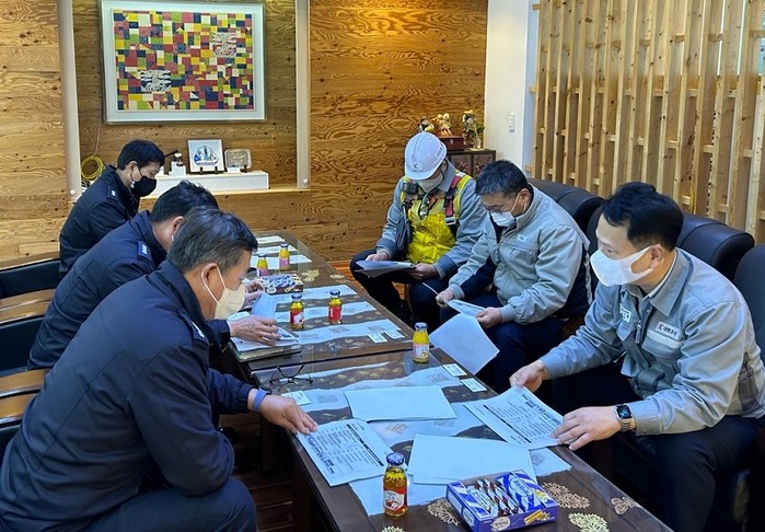 | ▲ 최형호 해남소방서장이 해남군 화원면 소재 대한조선을 방문해 대한조선 관계자들을 대상으로 대규모 건축물 화재예방 소방안전컨설팅을 실시하고 있다. / 사진=해남소방서 제공 |