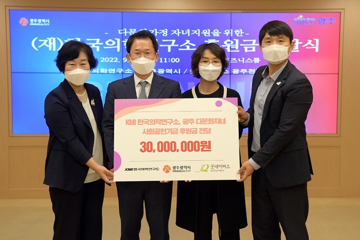 [광주=정찬남 기자] 광주광역시는 30일 시청 비즈니스룸에서 (재)한국의학연구소와 굿네이버스 관계자들이 문영훈 행정부시장에게 다문화가정 자녀를 위해 힘써달라며 후원금 3000만 원을 전달했다고 밝혔다.