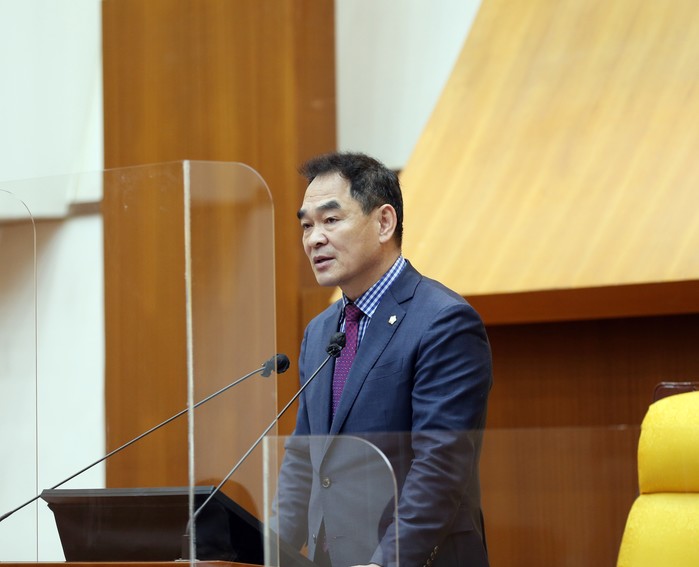 | ▲ 박진식 도봉구의회 의장이 지난 3월24일 진행된 제2차 본회의에서 발언하고 있다.(사진제공=도봉의회) |