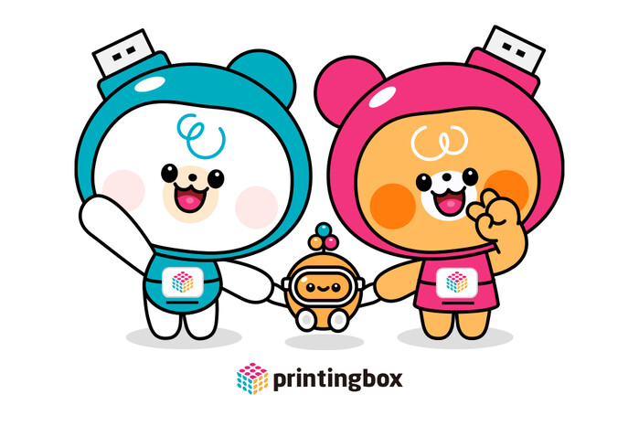 프린팅박스 캐릭터는 사용자의 친근함으로 홍보효과를 높일 수 있는 곰돌이 모양과 디지털 통신을 상징하고 데이터를 저장할 수 있는 장치인 USB를 결합하여 프린팅박스 AI로봇 ‘스피’와 ‘이지’가 개발됐고, 로고에서 뛰어나온 듯한 동그란 모양의 ‘동글이’를 서브 캐릭터로 만들어졌다.
