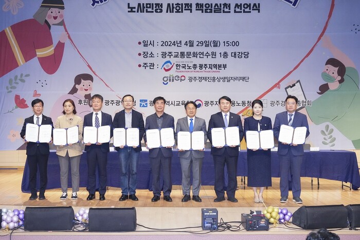 노사민정 사회적 책임 실천 선언식도 진행했다. 광주시와 한국노총 광주지역본부, 광주경영자총협회, 광주시민단체협의회, 광주시교육청, 광주지방고용노동청, 광산구, 광주시의회, 광주경제진흥상생일자리재단이 참여했다.