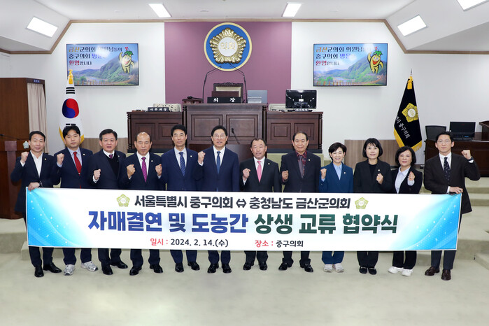 [시민일보 = 여영준 기자] 서울 중구의회(의장 길기영)가 최근 구의회 소회의실에서 구의회와 충남 금산군의회간 상생 발전을 위한 업무협약을 체결했다.