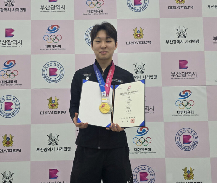 | 인천대 사격부 금메달 수상자 이준환 선수가 포즈를 취하고 있다. (사진=인천대) |