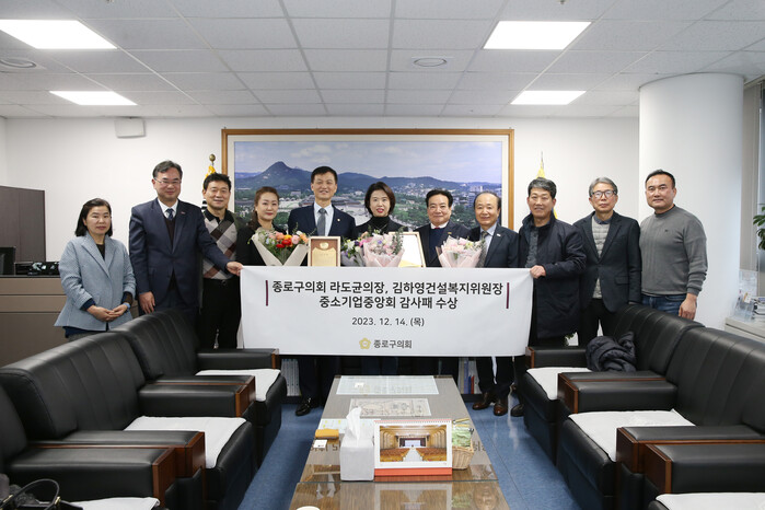 [시민일보 = 이대우 기자] 최근 종로구의회 라도균 의장과 김하영 건설복지위원장이 중소기업중앙회(회장 김기문)로부터 감사패를 수여 받았다.