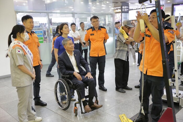 특히 광주소방안전본부는 13일을 ‘심폐소생술의 날’로 지정해 광주종합버스터미널, 광주송정역, 광주역 등에서 귀성객을 대상으로 소방안전교육 부스를 운영했다. 부스에서는 ‘완강기 이론’,‘완강기 장비 착용 및 사용법’, ‘심폐소생술 이론·실습’, ‘하임리히(기도에 이물질이 들어가 숨을 쉴 수 없을 때 사용하는 구급 요법)’ 등 체험활동을 진행했다.