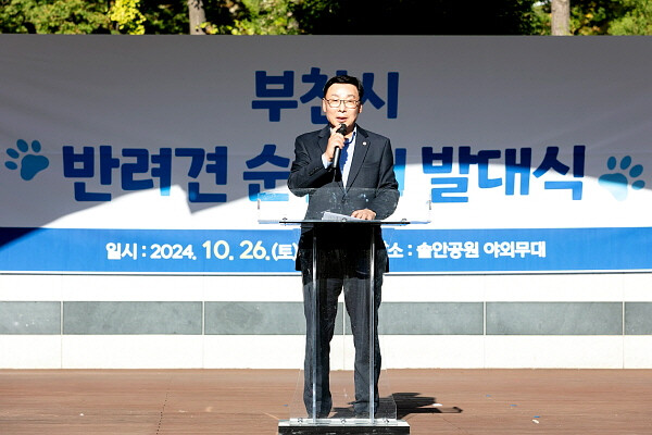 [부천=김형만 기자] 김병전 부천시의회 의장은 26일 상동 솔안공원에서 열린 부천시 반려견 순찰대 발대식에 참석해 순찰대의 출발을 축하했다.