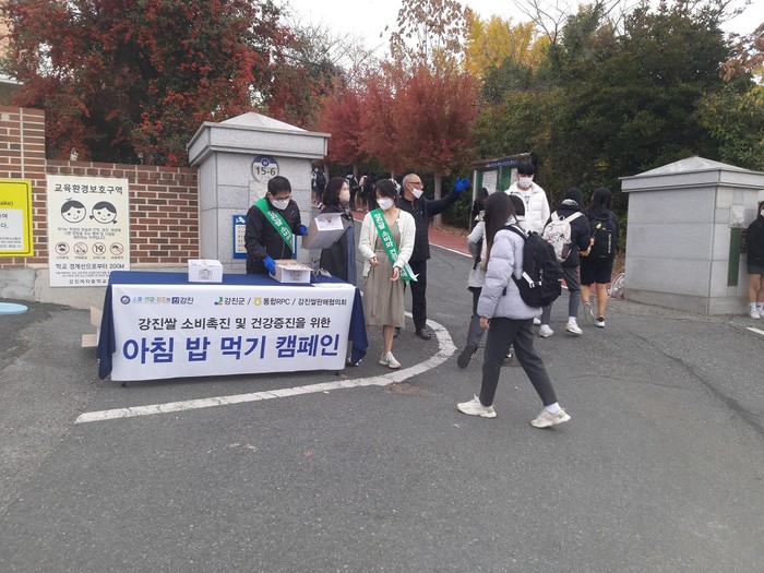 | ▲ 강진군, 관내 학생들을 대상으로 아침 밥 먹기 쌀 소비 캠페인 / 사진=강진군 제공 |