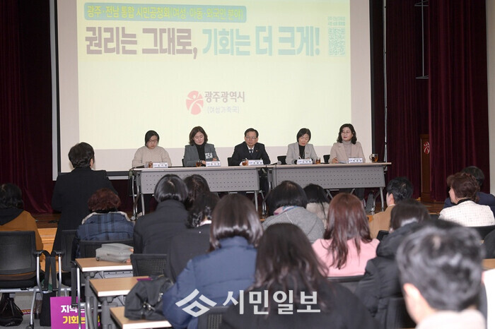 [광주=정찬남 기자] 광주광역시(시장 강기정)는 27일 일가정양립지원본부에서 여성단체, 아동‧보육‧돌봄 관계자, 다문화‧외국인 지원기관 종사자 등 200여 명이 참석한 가운데 ‘광주전남 통합 여성‧아동‧외국인 분야 시민공청회’를 개최했다.