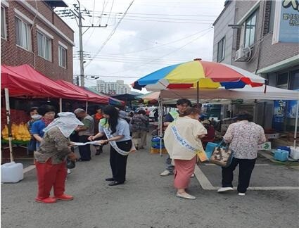 | ▲ 한국농어촌공사 해남·완도지사, 2024년부터 고령농업인의 영농은퇴 후 생활안정을 돕기 위한 ‘농지이양 은퇴직불제’ 지역민 대상 홍보 활동 / 해남완도지사 제공 |