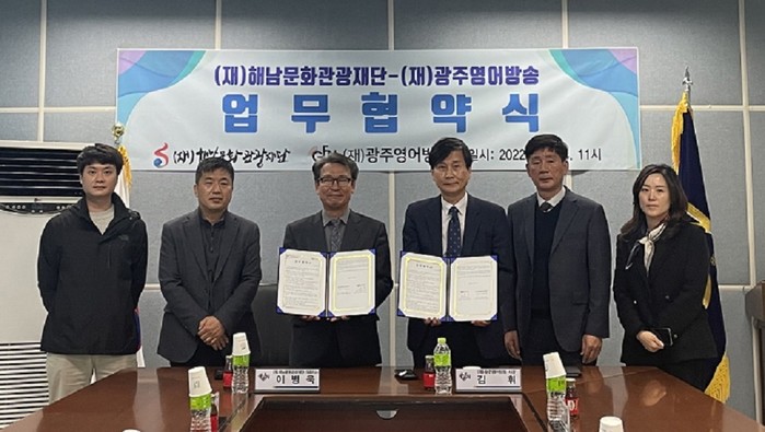 해남문화관광재단과 GFN 광주영어방송은 GFN 회의실에서 양 기관의 발전과 해남군의 지역문화관광 부흥을 위한 업무협약을 체결했다.