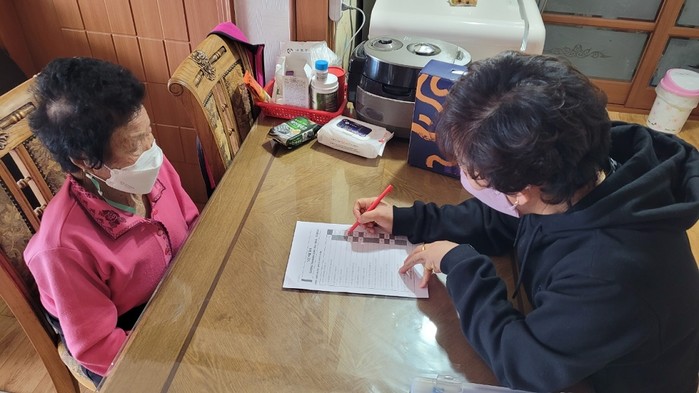 | ▲ 영암군 정신건강복지센터 생활지도사, 관내 독거노인 1400여 명 대상 찾아가는 우울증 선별검사 / 영암군 제공 |