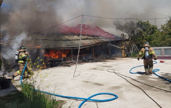 [해남=정찬남 기자] 전남 해남군 삼산면 창리 한 주택에서 지난 4월 26일 오후 1시 20분경 발생한 화재가 발생했지만 이웃집 의인 가족들의 활약으로 큰 인명 피해를 막았다는 미담이 화제를 낳고 있다.
