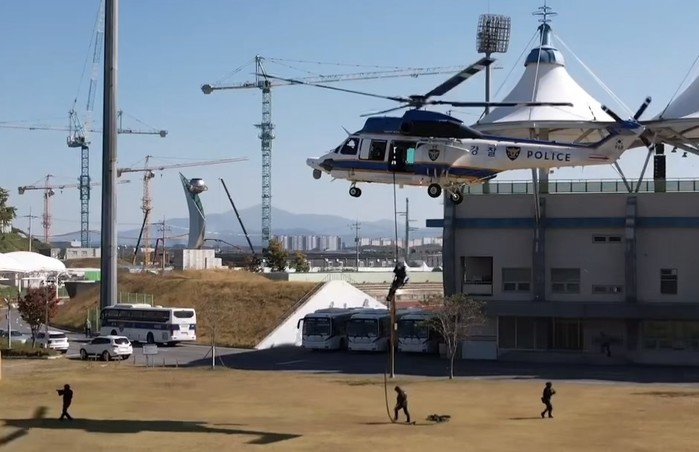 최근 이슈가 되고있는 드론 테러 대응을 비롯해 화학테러, 폭발물, 인질테러 등 복합적인 상황을 가정하여 훈련을 진행했다.