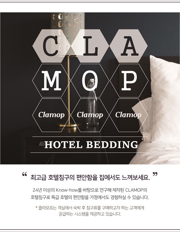 클라모프는 최근 호텔침구의 선호도가 높아지고 호텔침구를 구매하고자 원하는 고객의 문의가 증가함에 따라, 고객이 객실에서 리플렛을 보고 펜션이나 호텔에서 직접 주문하고 집에서 받아볼 수 있는 침구류 제공 시스템을 준비했다.